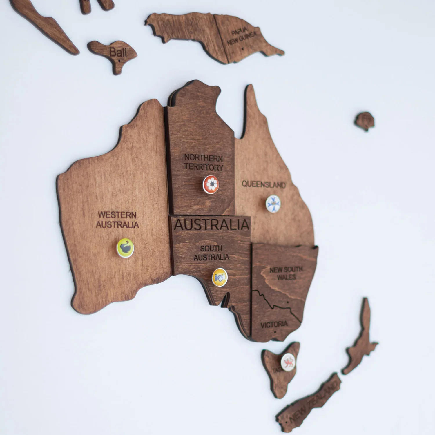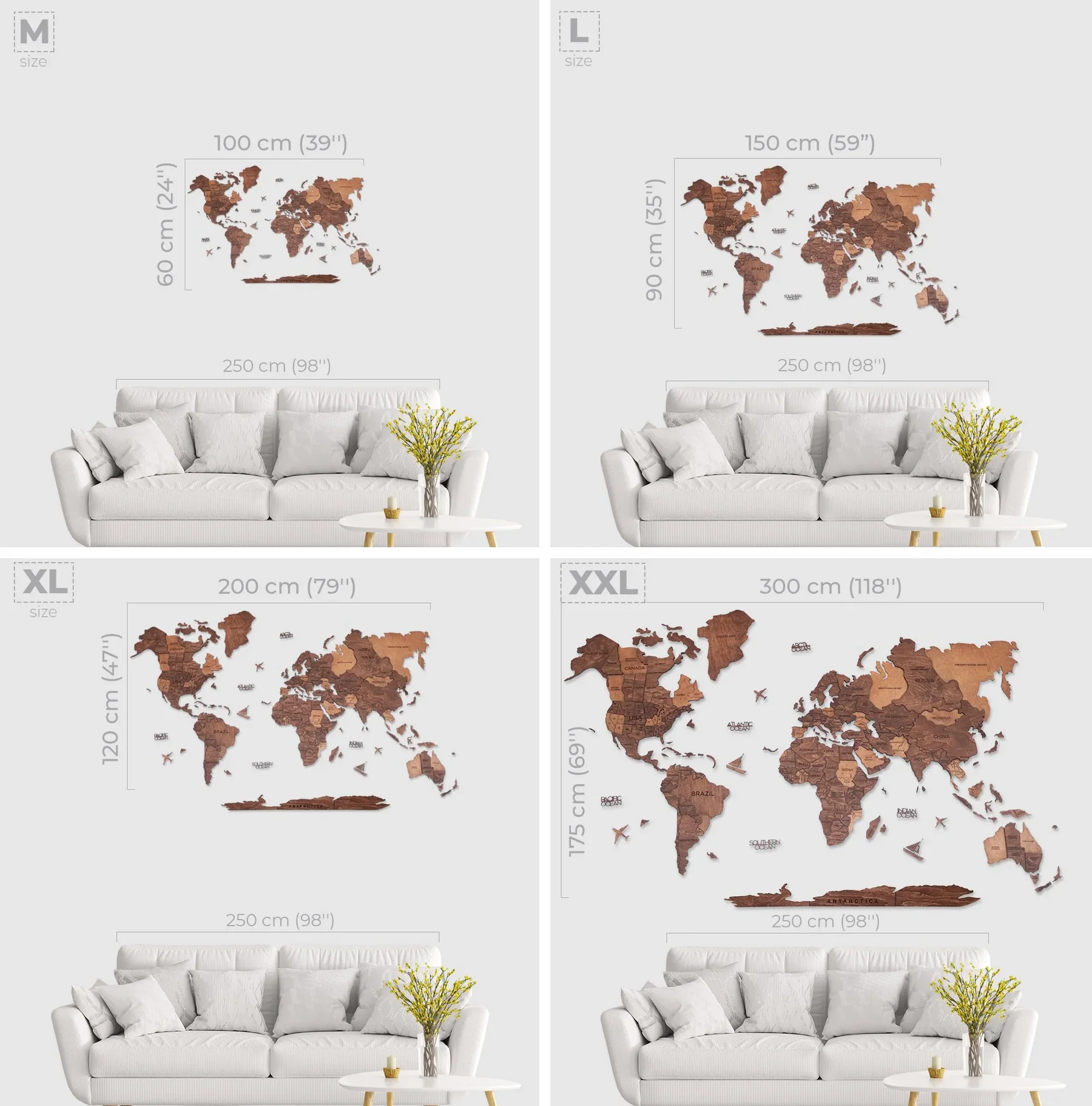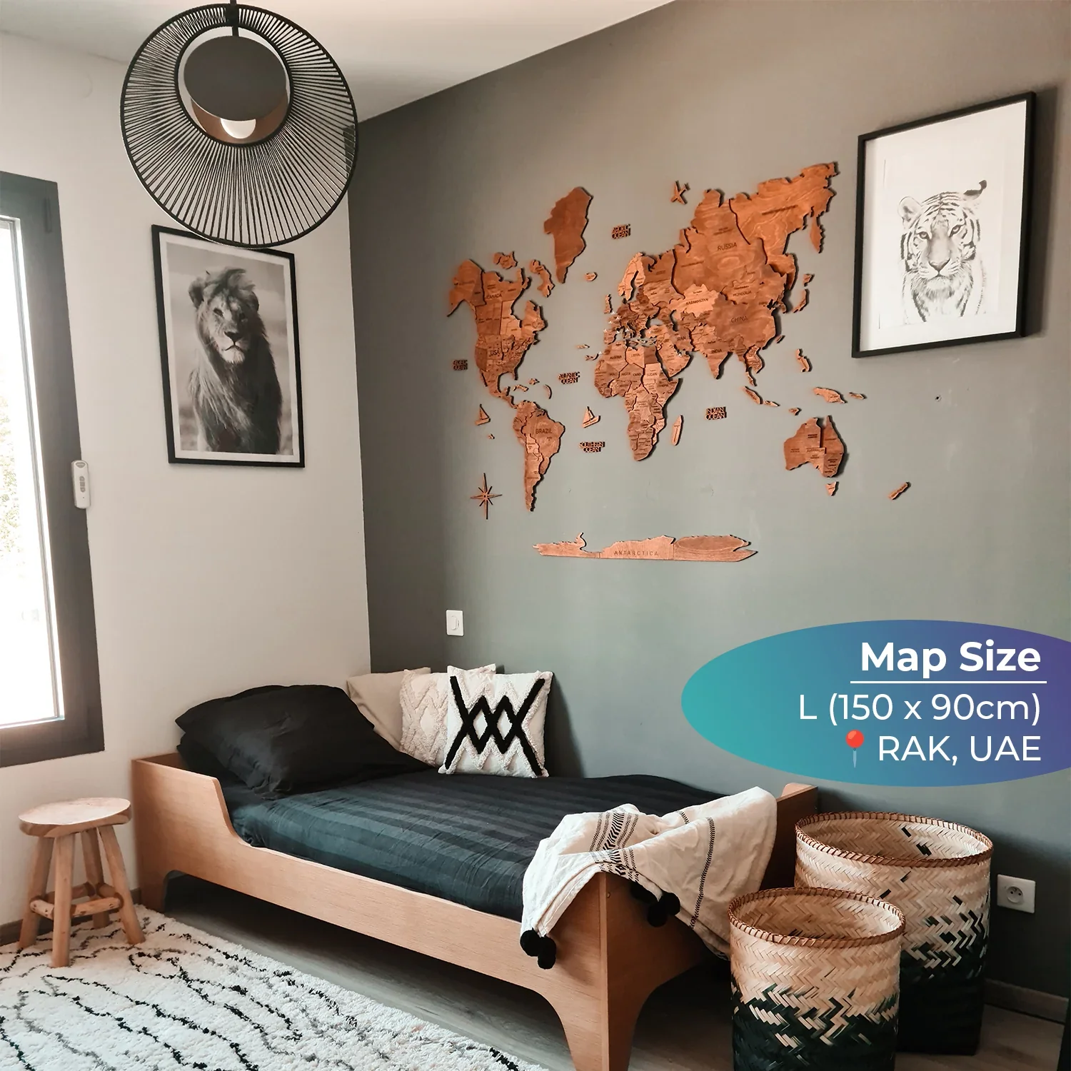 3D Wooden World Map, Oak